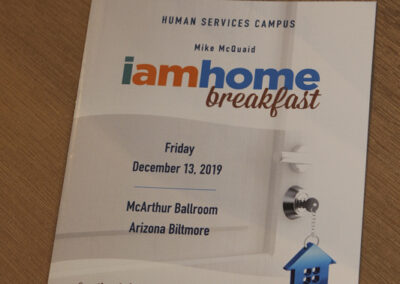 On Friday morning, December 13th, we heard success stories from individuals who made their unique journeys home; they each shared their gratitude for all of the staff and services on the Campus. Executive Director Amy Schwabenlender updated everyone on the State of the Campus and provided a glimpse of the “2.0” vision, including a strengthened partnership with the ASU Watts College of Public Service and Community Solutions. Amy also recognized our clients, staff, partners, and volunteers for all they do in ending homelessness. Andre House received the Mike McQuaid Collaboration Award. Mike McQuaid, past Board President and Board member, thanked the Garcia Family Foundation for their very generous multi-year pledge to the Campus, as well as Avondale Toyota, Thunderbirds Charities, and many others who have been long-term supporters of the Campus and our partners. Mike also introduced new Board President, Jonathan Koppell. Jonathan provided a passionate explanation of the need for more shelters beds on the Campus and urged everyone to come together and help with the respective zoning permit change, anticipated to be voted on this spring. We are so grateful for all who make this event and all of these successes possible!