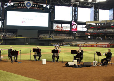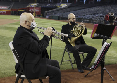 The event also featured a performance by the Phoenix Symphony brass quintet, the first performance by orchestra members this year following cancelation of the season because of the pandemic. Arizona Diamondbacks’ mascot Baxter made a special appearance.
